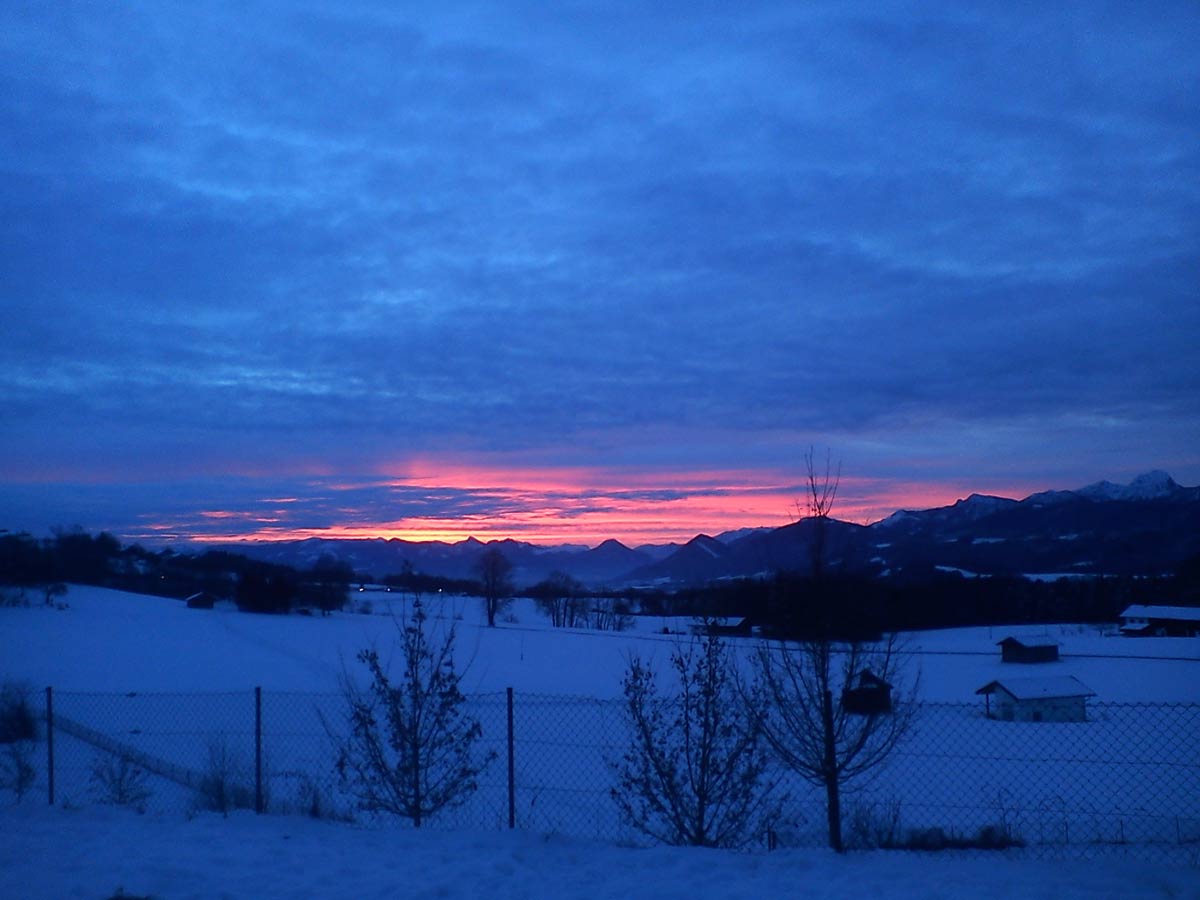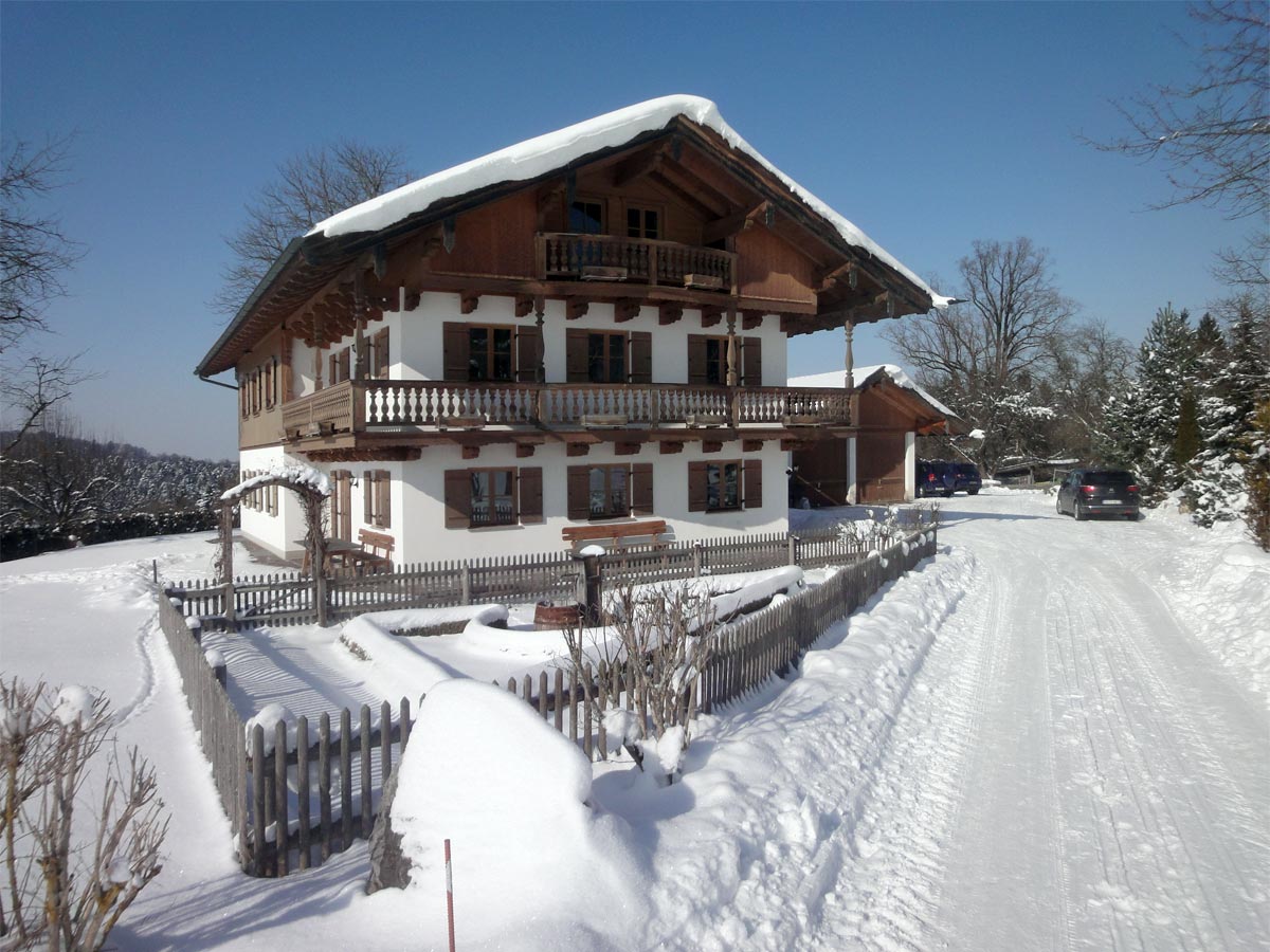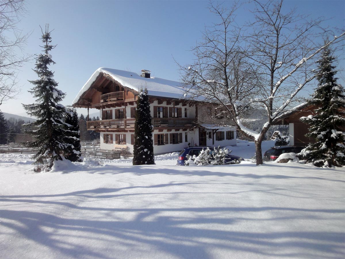 Bauerngarten vor dem Haus im winterlichen Kleid